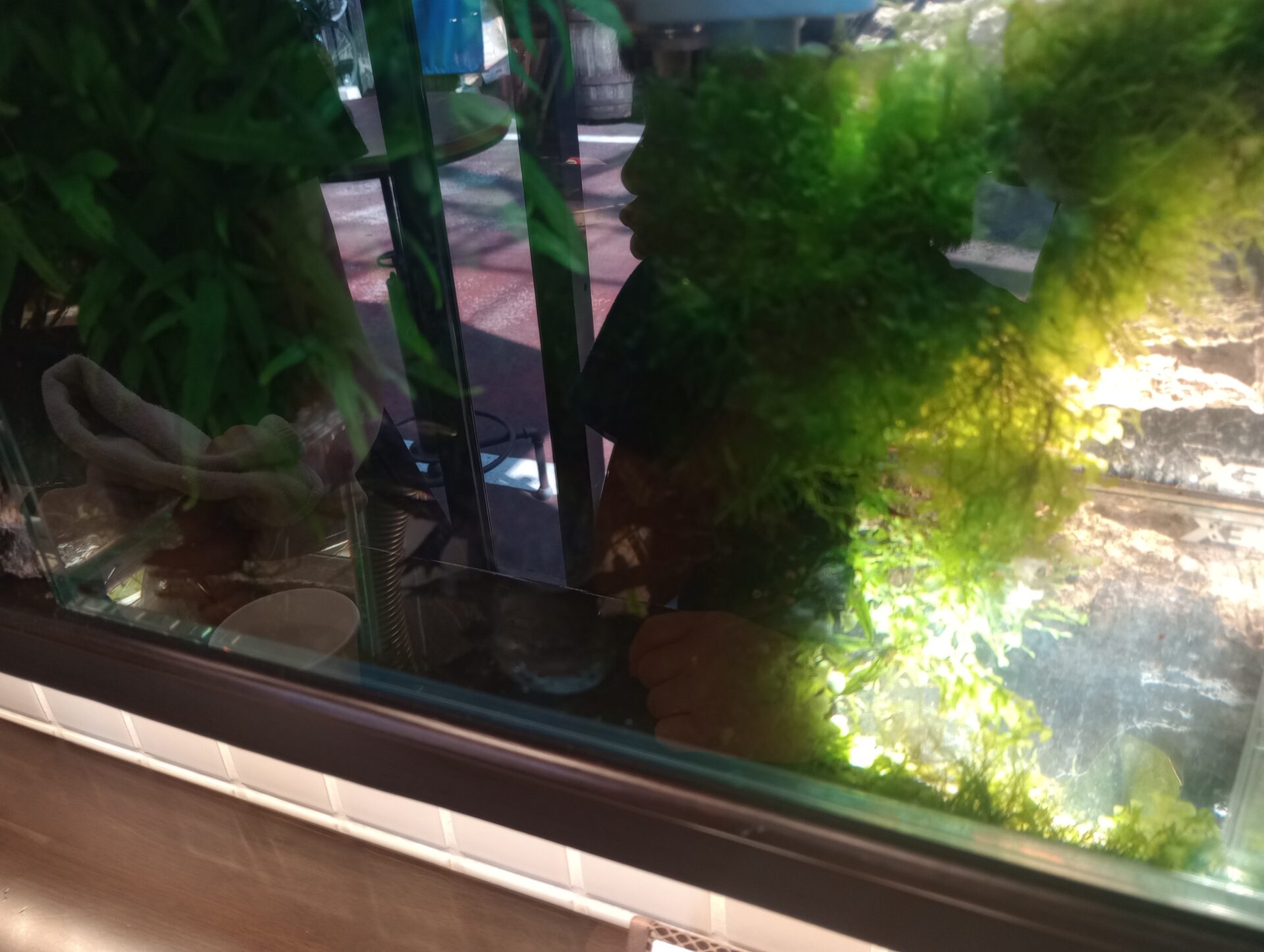 店頭には熱帯魚が泳ぐ大きな水槽が!