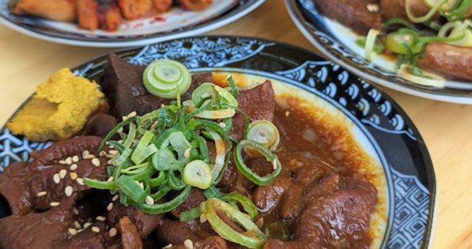 ぼっかけ(すじコン): 牛すじとこんにゃくを甘辛く煮込んだ料理。兵庫区・長田区の周辺が本場。うどんやお好み焼きに入れて楽しみます。